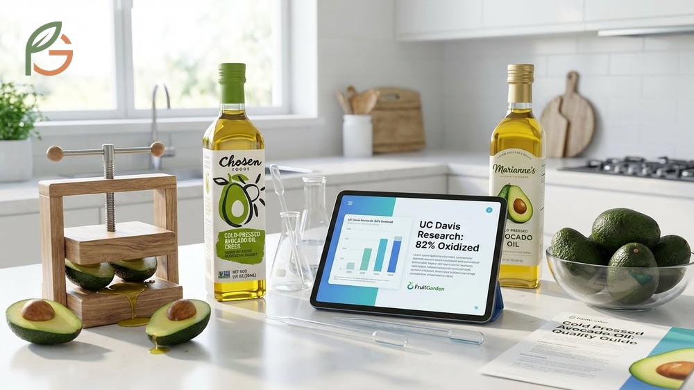 Cold pressed avocado oil stands out as one of the healthiest cooking oils with a high smoke point, but research from UC Davis reveals that 82% of avocado oils sold in the US are either oxidized or adulterated before their expiration date[1]. Only two brands—Chosen Foods and Marianne’s—passed purity tests as pure and non-oxidized[1]. FruitGarden synthesizes current research to help you identify authentic products and make informed purchasing decisions.