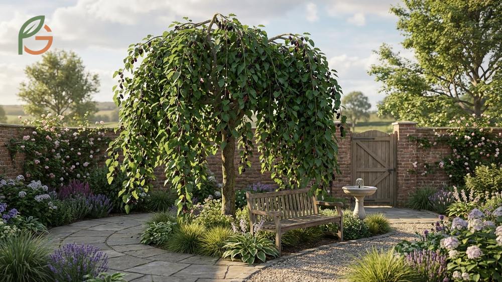 Weeping mulberry tree brings dramatic cascading form and edible fruit to landscapes across USDA zones 4-8[1]. Research shows this Morus alba cultivar combines sculptural beauty with practical benefits—sweet dark berries, minimal maintenance, and cold tolerance to -25°F (-32°C)[1]. FruitGarden synthesizes current horticultural research to help you master this distinctive ornamental tree for small gardens, courtyards, and focal landscapes.